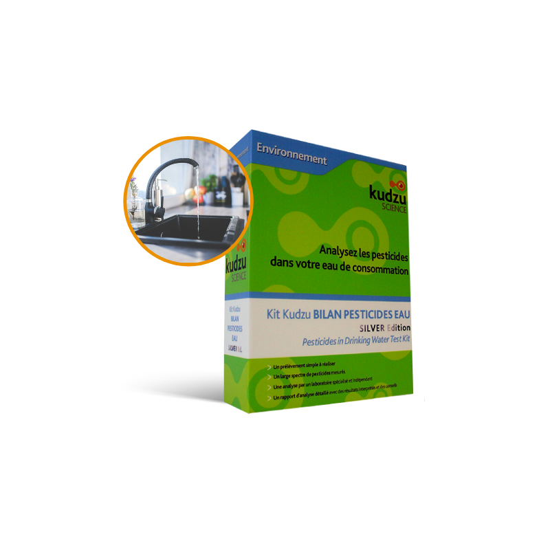 La réglementation actuelle impose de déterminer la teneur en pesticides présents dans l'eau destinée à la consommation humaine. Ces données sont communiquées par les mairies et les fournisseurs d'eau. Cependant, ces contrôles ne sont pas suffisamment réguliers pour garantir que l'eau consommée tous les jours respecte ces normes sanitaires. Par ailleurs, seuls les dépassements de la norme sont présentés. Qu'en est-il de l'eau qui alimente votre habitation ? Le kit d'analyse que nous proposons vous permet d'effectuer ce contrôle et de savoir si vous pouvez consommer l'eau de votre robinet sans risque pour votre santé ! A partir d'un prélèvement de votre eau, Kudzu Science analyse les pesticides présents et dresse le bilan pesticides de votre eau.