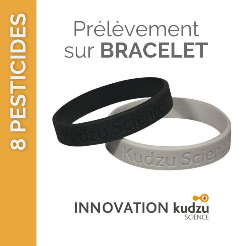 Ce kit d’analyse permet de mesurer votre exposition à 8 pesticides. Le dispositif de prélèvement sur bracelet est très simple : après avoir porté le bracelet en continu pendant 7 jours, et l'avoir retourné à Kudzu Science, celui-ci est analysé en laboratoire pour identifier et quantifier les pesticides qui y sont présents. En l’absence de valeurs guides, les résultats sont comparés aux données statistiques établies par le laboratoire.