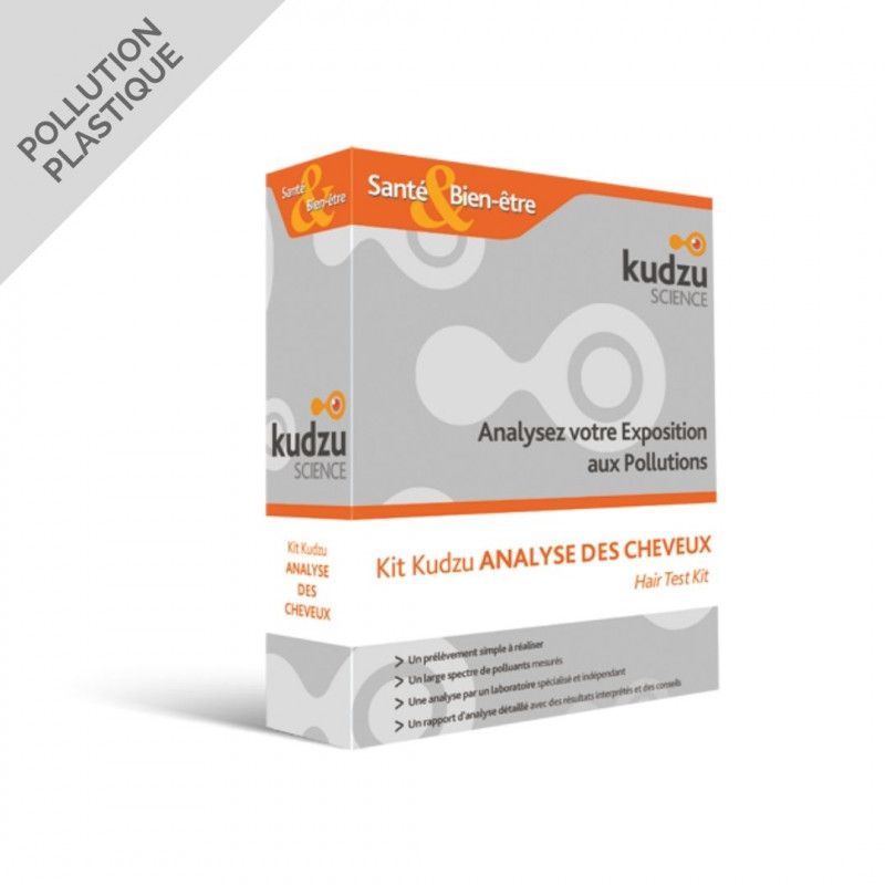Ce kit d’analyse permet de mesurer votre exposition à 12 plastifiants. Le dispositif de prélèvement de cheveux est très simple d’utilisation. Une fois collectée et renvoyée, la mèche de cheveux est analysée en laboratoire pour identifier et quantifier les polluants qui y sont présents. En l’absence de valeurs guides, les résultats sont comparés à des statistiques d’exposition humaine établies par Kudzu Science.