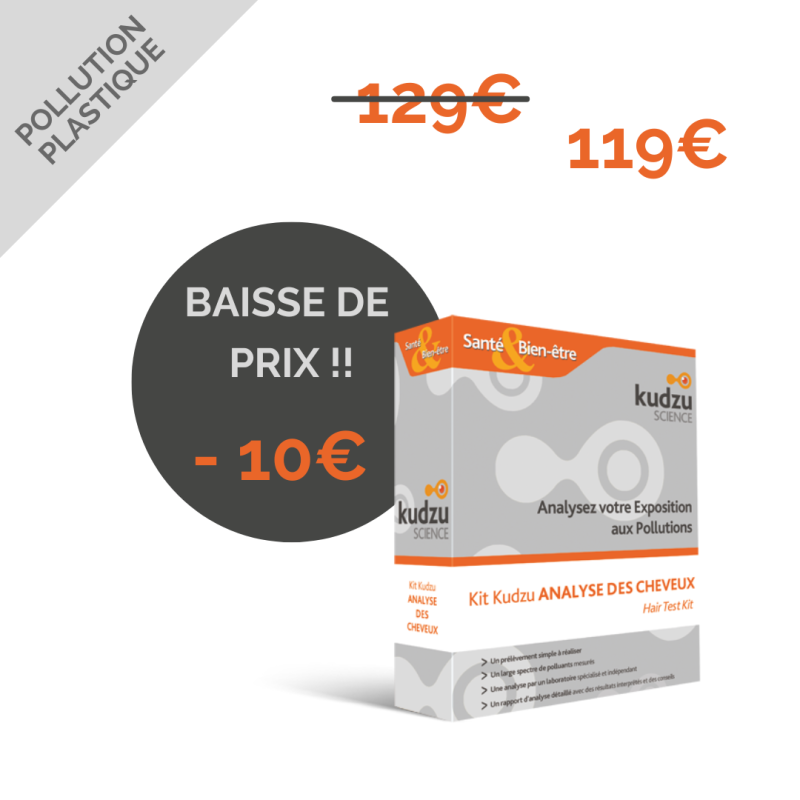 Vous pouvez aussi mesurer votre exposition aux plastifiants grâce à notre nouveau dispositif de prélèvement sur bracelet : Kit Pollution Plastique Bracelet. Kudzu Science vous propose également d'évaluer la contamination de votre logement avec le Kit Pollution Plastique Poussière.